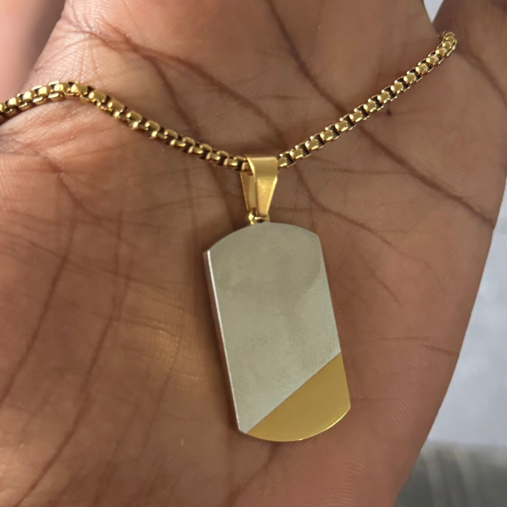 Collier militaire minimaliste pour homme, acier inoxydable, finition polie et brossée De Couleur Or et Argent ✨