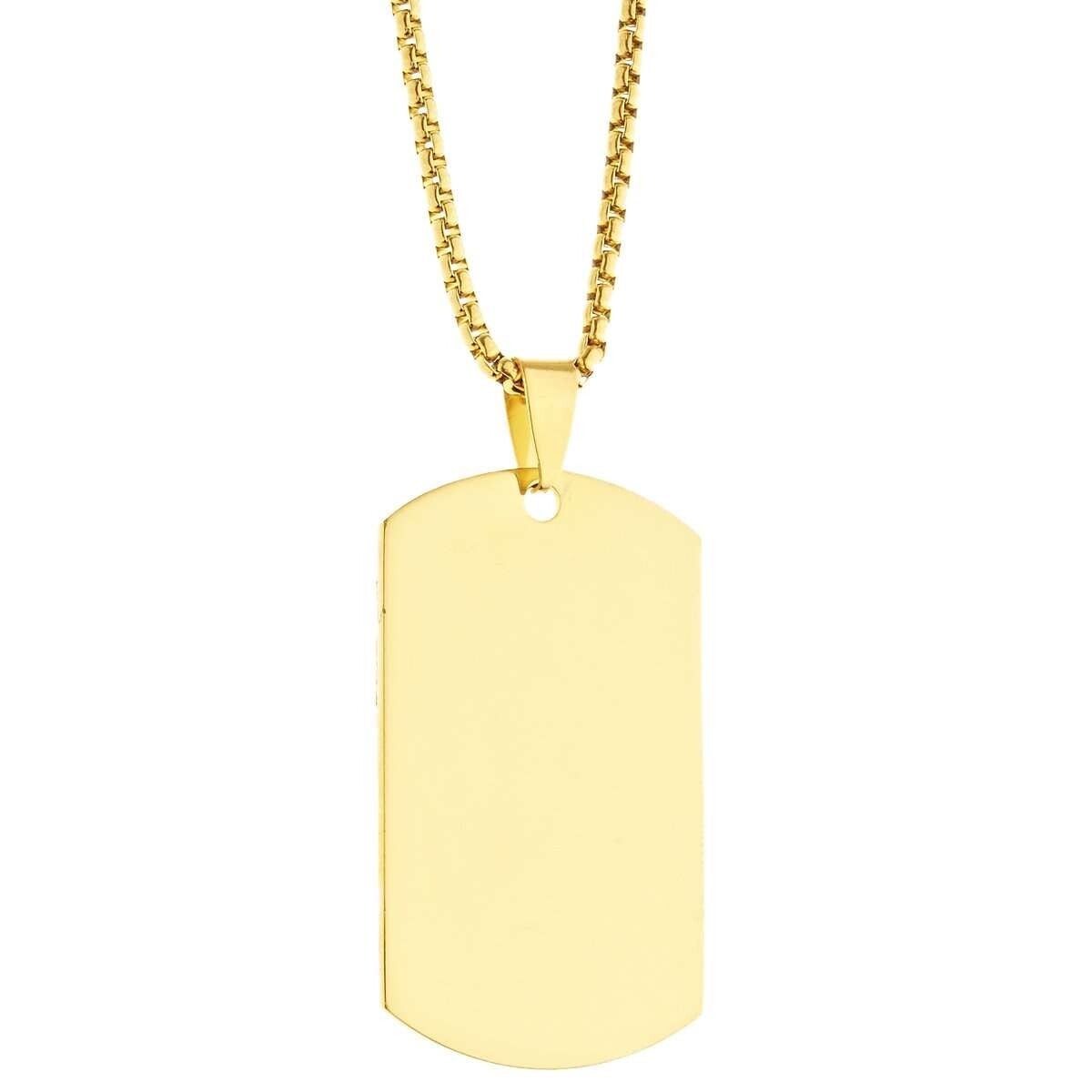 possibilité de graver en recto et verso , texte , image, date ..Chaîne en acier inoxydable avec pendentif en acier inoxydable. Revêtement de qualité.Taille incl Oeillet: 50 x 25mm.Longueur de la chaîne: 60cm.